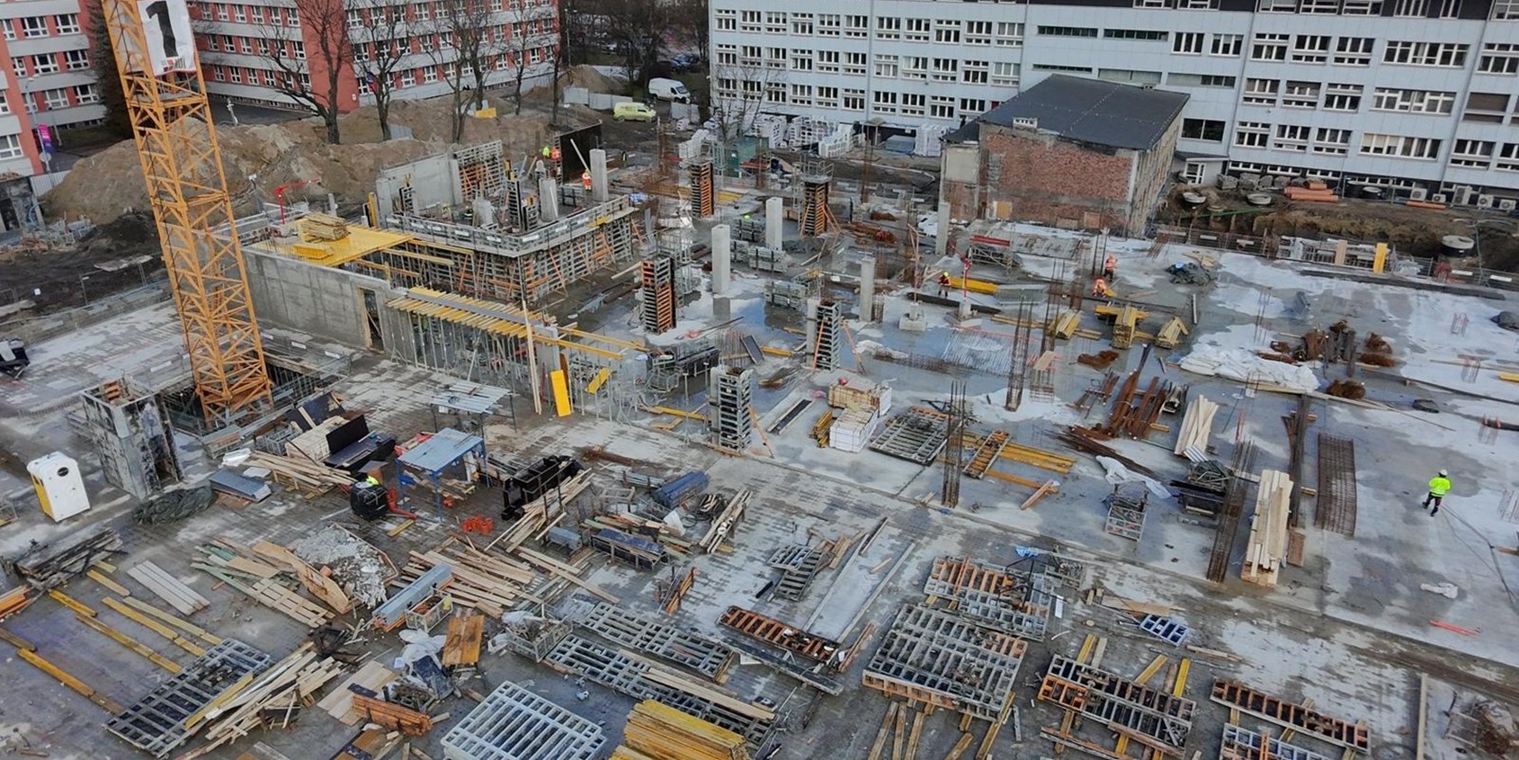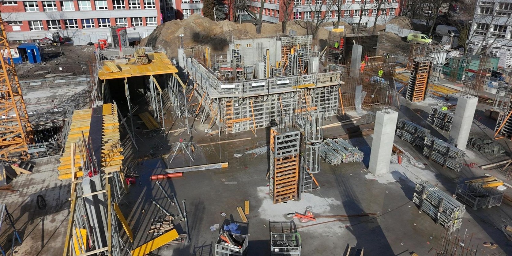 Budowa Śląskiego Interdyscyplinarnego Centrum Chemii wchodzi w coraz bardziej zaawansowaną i widoczną fazę realizacji. Obiekt zaczyna wyraźnie wyłaniać się ponad powierzchnię terenu.